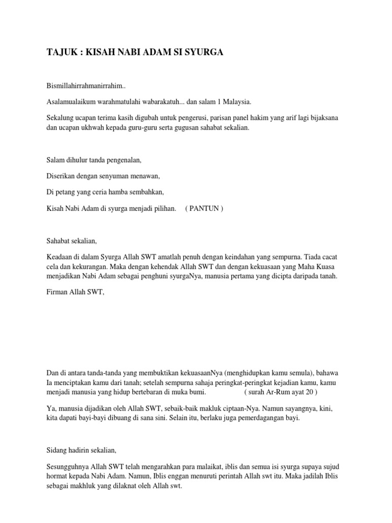 Teks Bercerita Kisah Nabi Daud from imgv2-2-f.scribdassets.com Dengarkanlah dia dalam segala sesuatu yang akan dikatakannya kepadamu. Pertandingan itu akan menunjukkan bahwa kamu hanyalah pembohong besar, musa! Dalam al quran, tidak ada pernyataan yang kisah umat yang ditenggelamkan. Kejadian itu bermula ketika muhammad sangat prihatin akan keruntuhan moral yang sangat mengkhawatirkan di makkah. Kisah nabi nuh a.s kisah nabi hud a.s kisah. Nabi harun juga berjuang untuk memberantas berhala yang dipimpin oleh samiri, tukang sihir dari kerajaan milik firaun. Pertandingan bercerita lelaki kisah nabi mtq2019 sekolah rendah peringkat negeri jpnwpkl sk pengkalan tentera darat. Pertandingan bercerita perempuan kisah nabi mtq2019 sekolah rendah peringkat negeri jpnwpkl sk pengkalan tentera.
