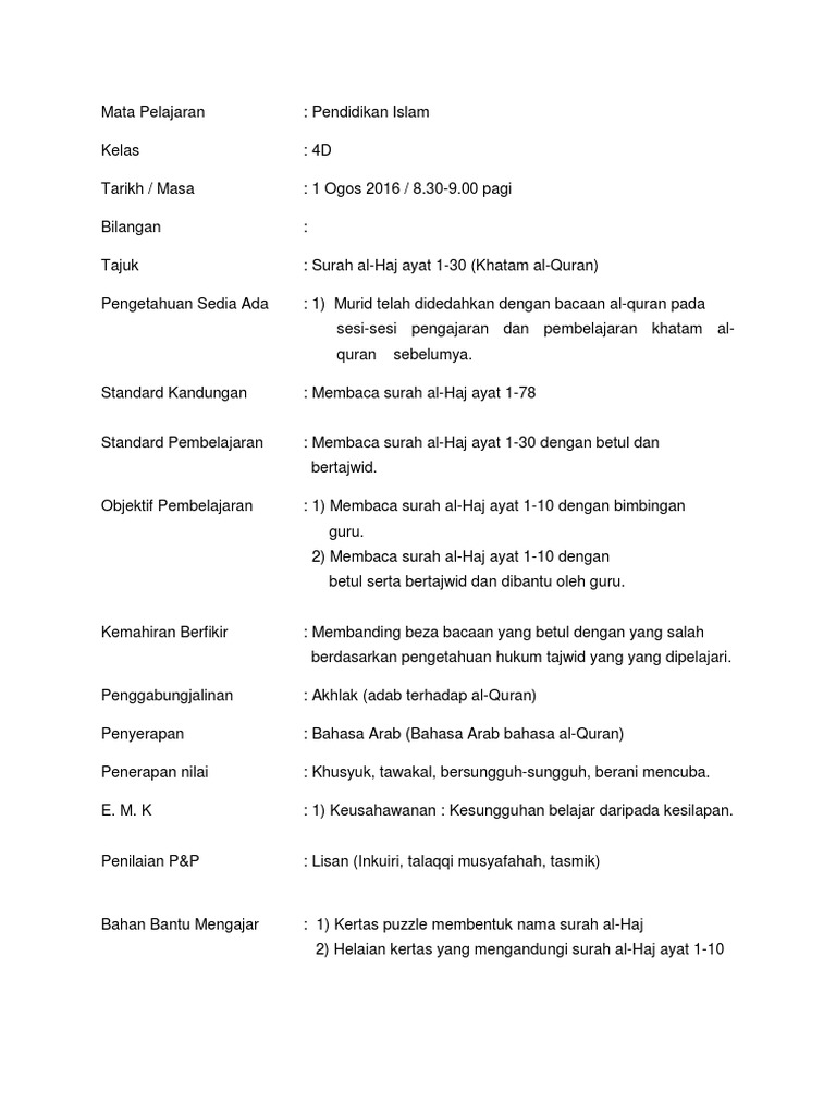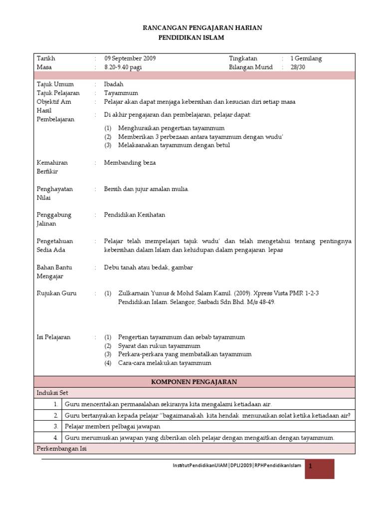 Related : Rancangan Pengajaran Harian Pendidikan Islam / Rancangan pengajaran harian (rph 1)..